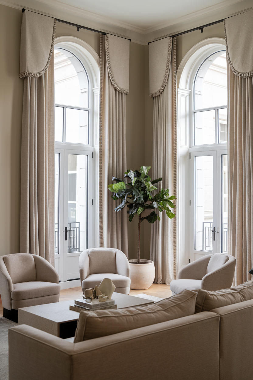 Window treatments have the power to completely change the mood and formality of a space. Swap out basic blinds for floor-to-ceiling drapes in soft linen, velvet, or sheer cotton. This adds drama, texture, and elegance, especially when mounted high above the window to elongate the wall visually. Consider layering curtains over subtle roller shades for both function and depth. Soft, flowing fabrics in a color that matches your wall or contrasts just slightly can make the whole space feel polished and cozy.