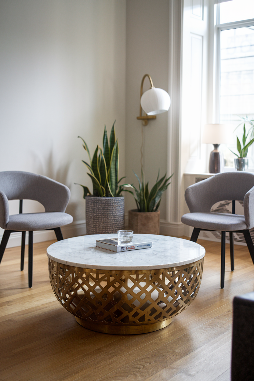 Move beyond the ordinary with a coffee table that makes a visual statement. Think marble tops, mid-century silhouettes, sculptural metal bases, or rustic reclaimed wood designs. The coffee table often acts as the centerpiece of a living room, so selecting one that’s both functional and visually interesting can help set the tone for your entire space. Consider pairing it with complementary accent pieces like trays, stacked books, or artistic bowls for added flair.