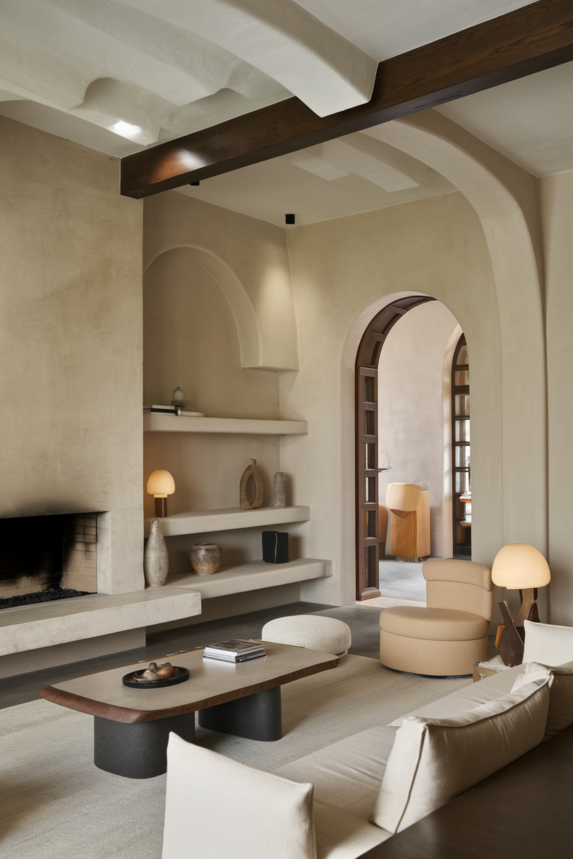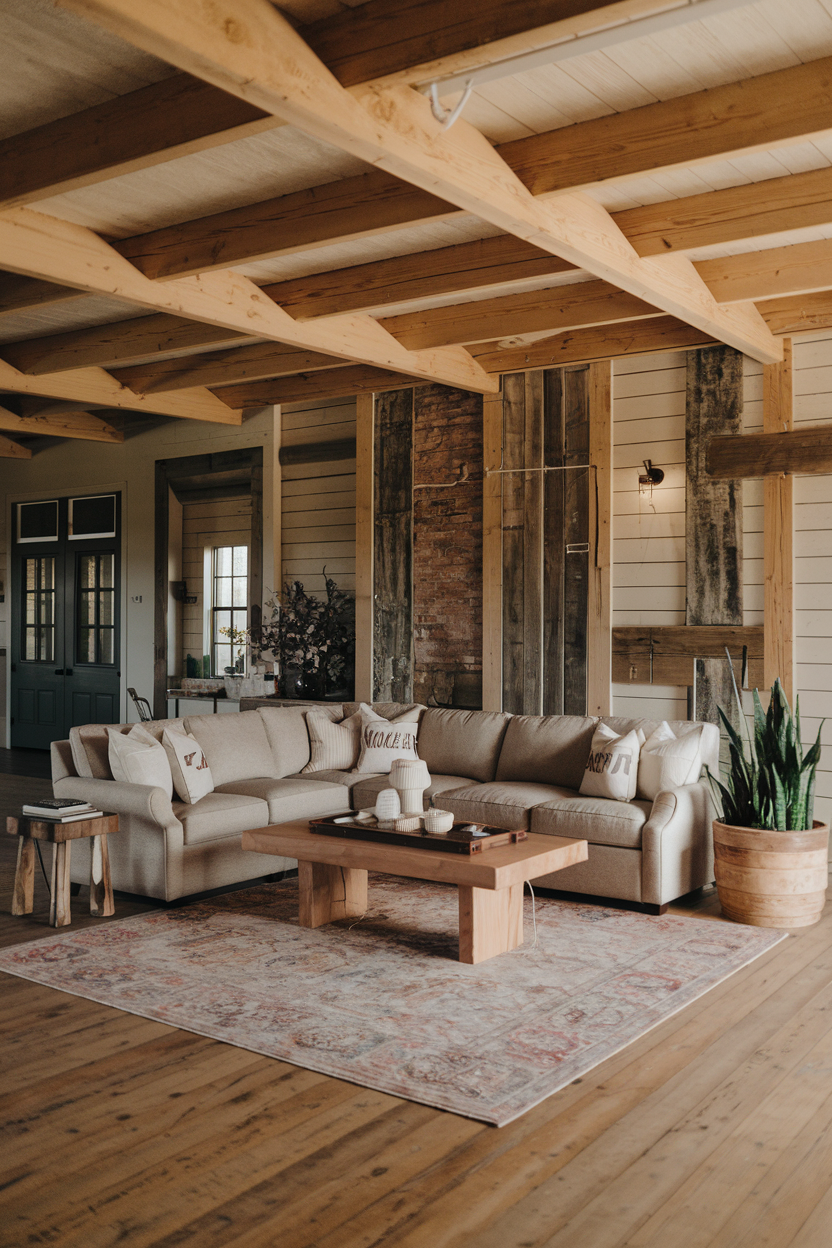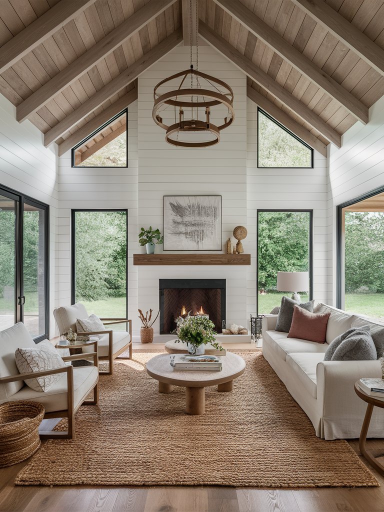 If your living room has built-in features like fireplaces, beams, alcoves, or arched doorways, make them the focal point. Highlight these areas with soft lighting, contrast paint, or well-placed furniture arrangements. Even if your space doesn’t come with these features, you can create architectural interest using faux beams, wainscoting, or board and batten wall treatments to add depth and elegance. This gives your living room a more custom, high-end feel.