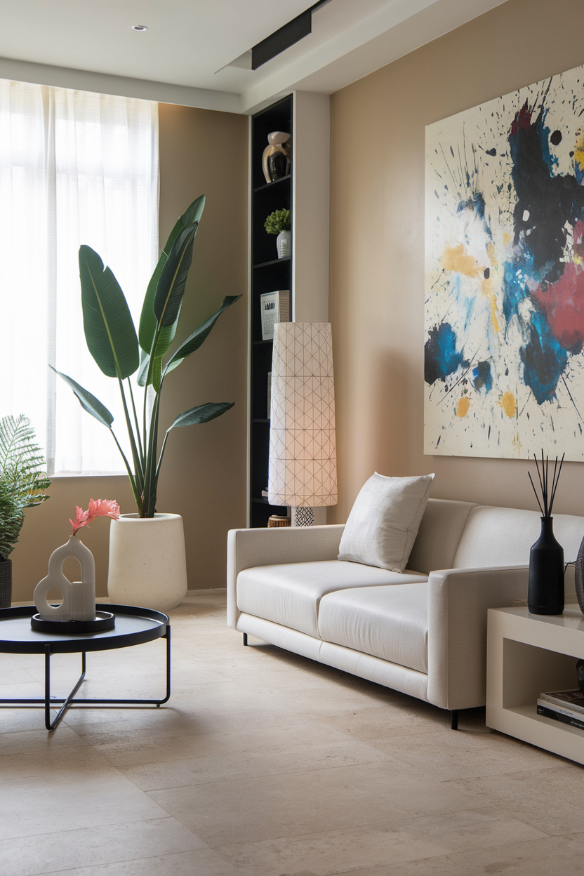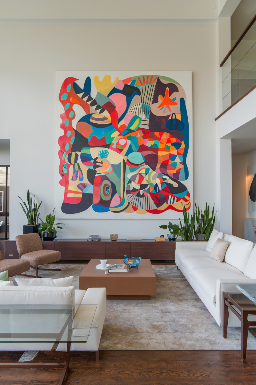 Art is a powerful design tool that can set the tone of your living room. Choose pieces that speak to you—whether that’s abstract paintings, minimalist prints, vintage landscapes, or bold graphic posters. Large-scale artwork makes a statement, while smaller pieces grouped in pairs or clusters create interest and rhythm. When your art reflects your taste and story, your living room becomes more than just a stylish space, it becomes yours.