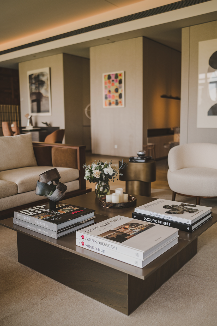 A well-styled coffee table adds charm and functionality to your living space. Stack a few large-format books on design, travel, art, or fashion to show off your interests while elevating the aesthetic of the room. Pair them with a sculptural object, a small vase of fresh flowers, or a tray of candles for a balanced look. This small detail can make your space feel curated and thoughtfully put together.