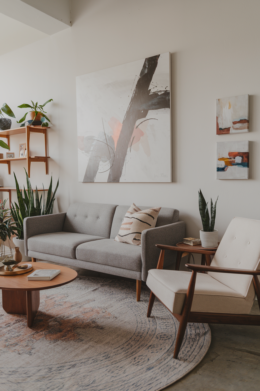 Art transforms a room, turning bare walls into personal galleries. Opt for pieces that resonate with you emotionally or stylistically, whether that means abstract paintings, minimalist line drawings, or framed photography. Oversized prints can become focal points, while smaller gallery walls offer curated charm. Choose frames that coordinate with your furniture to tie everything together. Consider mixing modern pieces with vintage finds for an eclectic touch, or curate a cohesive theme using black-and-white photography or botanical sketches. A well-chosen piece of art can serve as the visual anchor for your living room and inspire the rest of your color palette and decor choices.
