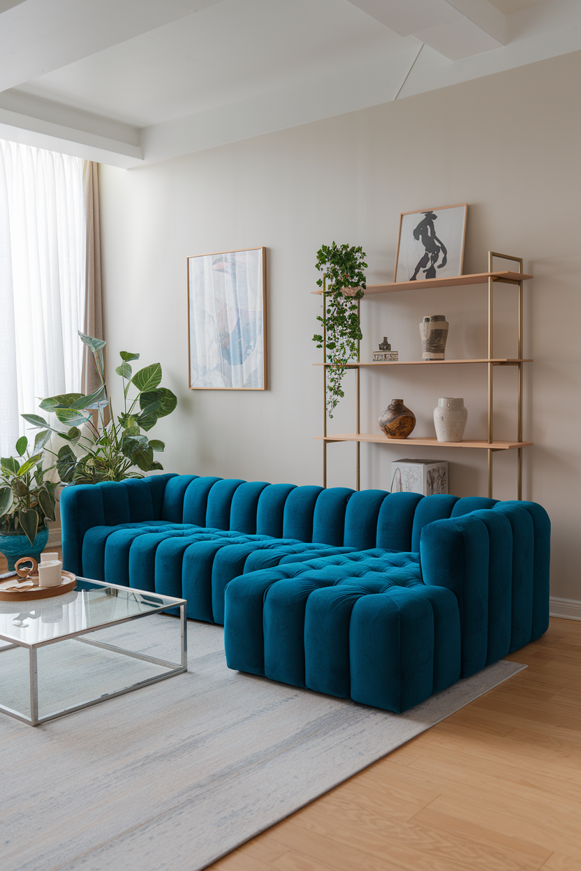 If you have the space, invest in a large sectional or oversized sofa that commands attention and defines the room. Opt for one in a soft fabric like velvet, linen, or performance chenille, and choose a color that either anchors your scheme or adds a pop of interest. An oversized couch can act as the heart of the room, inviting relaxation and giving you the opportunity to play with scale in your other decor choices.
