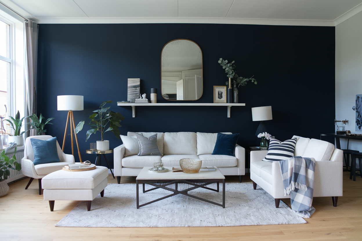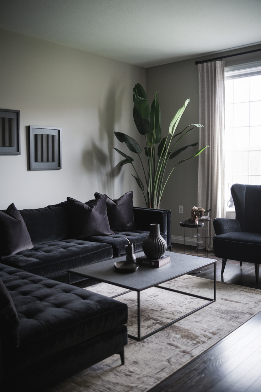 Inject a sense of drama and sophistication by incorporating moody accents like deep charcoal pillows, black metal frames, or inky blue throws. These darker tones add contrast and make lighter elements stand out more, adding balance and richness. Don’t be afraid to go bold with one key piece, like a black accent wall or a dark velvet armchair. The result is a space that feels layered, intentional, and high-impact without sacrificing comfort.