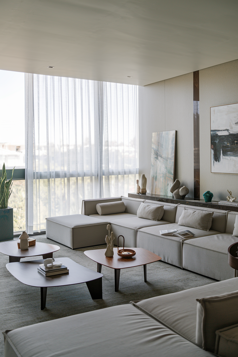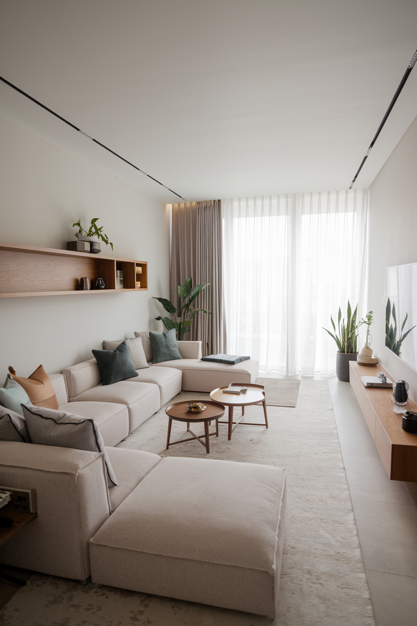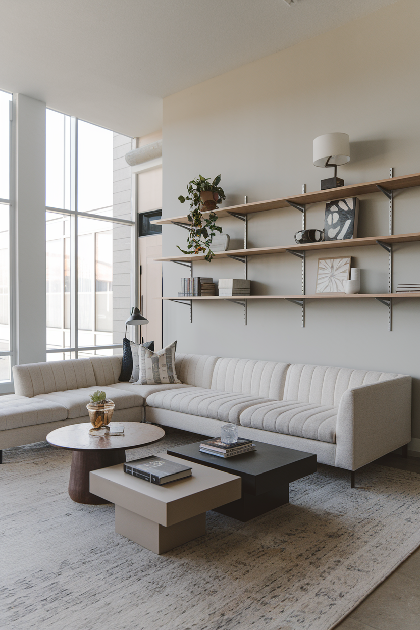 Low-profile furniture, such as minimalist sofas or coffee tables, helps create the illusion of more space and enhances the feeling of openness in your living room. When furniture is kept closer to the floor, it allows light to flow more freely throughout the room. Low-sitting pieces can make a small room feel larger and more expansive, allowing natural light to reach every corner. Opt for sleek, low-profile furniture in neutral tones to maintain the airy and bright vibe you’re striving for.