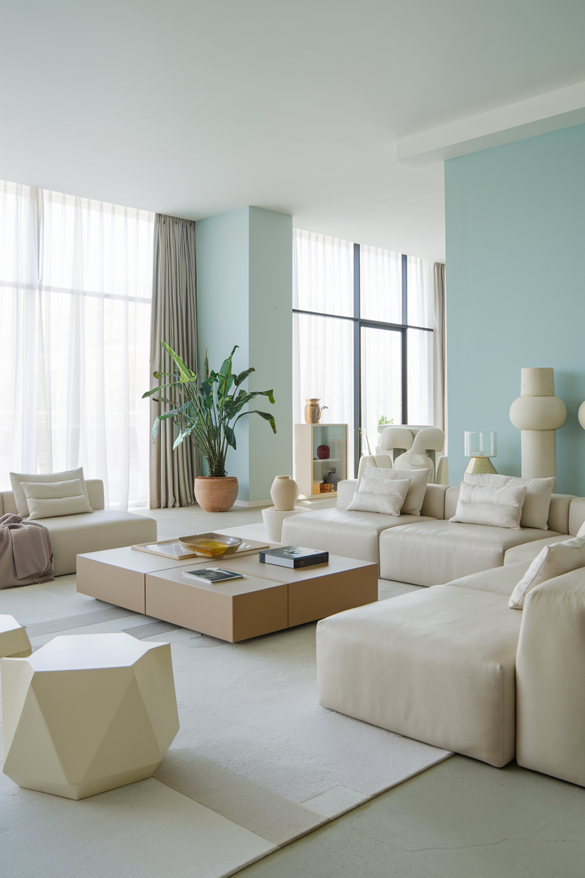 Pastel shades are known for their ability to soften a room while keeping it light and bright. Colors like pale pink, lavender, mint green, or soft peach have a delicate, airy quality that pairs beautifully with natural light. These subtle hues create a serene and calming atmosphere in the living room, and their soft tones won’t overpower the sunlight. Pastels also work well in furniture, decor, and accent walls, creating a cohesive and peaceful space that feels fresh and uplifting.