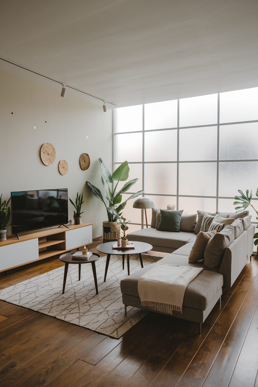 If your living room faces a street or neighboring homes, consider using translucent or frosted glass for your windows to preserve privacy without sacrificing natural light. These materials still allow light to flood the space while blurring the view, creating a softer, more diffused light. Frosted glass can be especially effective in rooms that require some degree of privacy but still want to feel open and bright. You can also use frosted glass for partitions, adding texture and light to the space while maintaining a sense of openness.