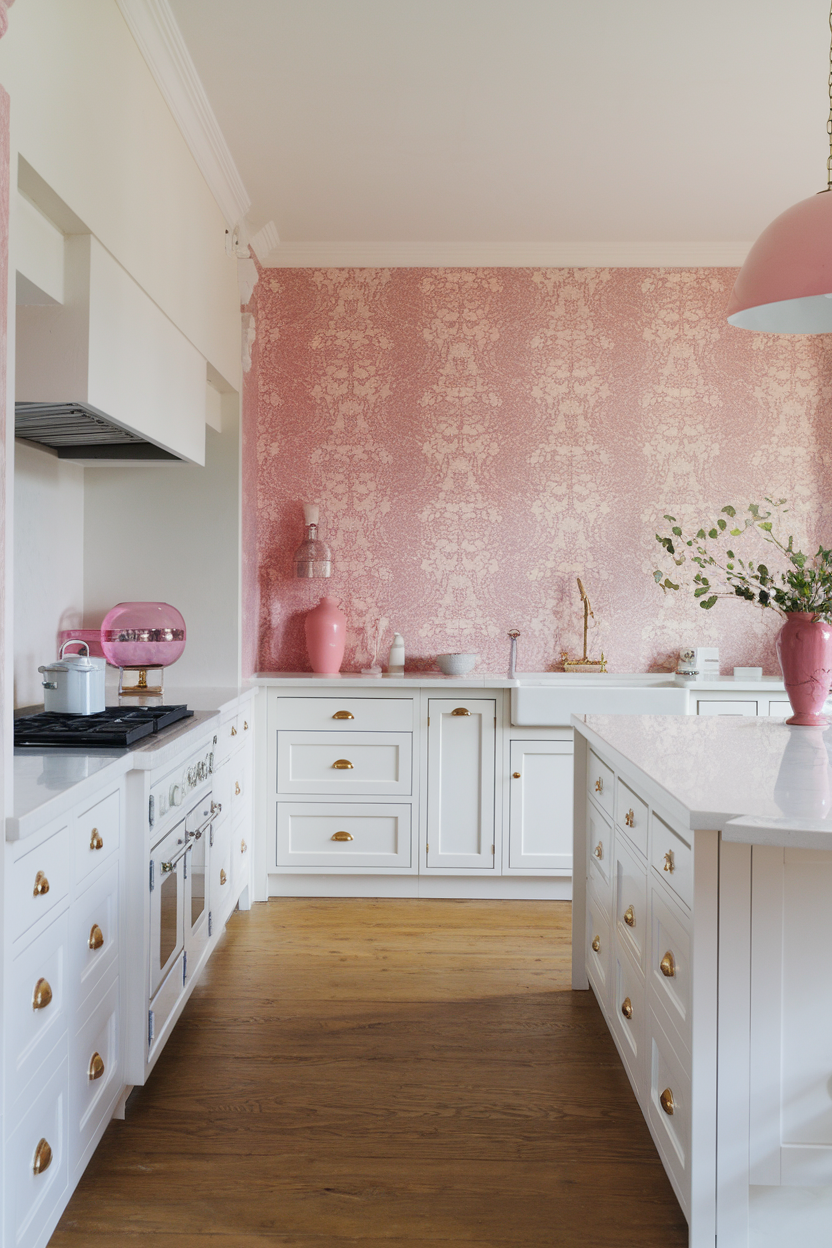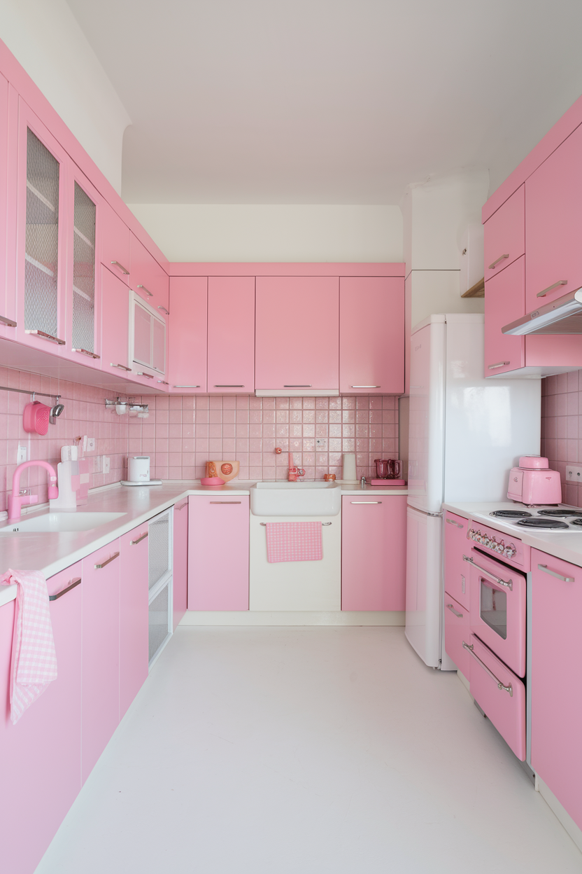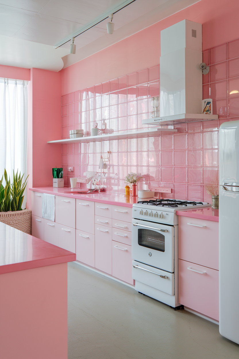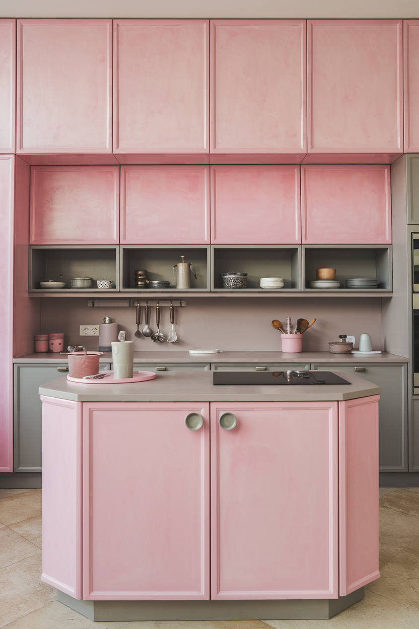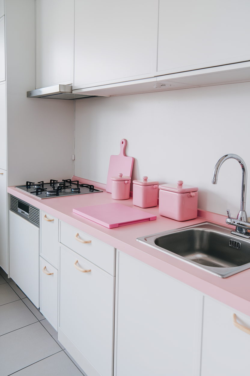 If you’re not ready for a full pink kitchen makeover, consider adding pink countertop accessories like canisters, utensil holders, or cutting boards. These small touches can bring color and personality to your kitchen without being permanent. It’s an easy way to test out the pink trend while keeping your kitchen design flexible.