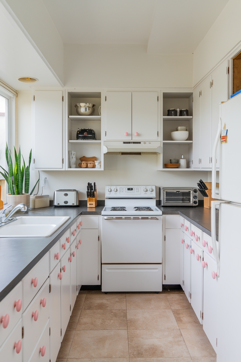 Switching out cabinet hardware is one of the easiest ways to refresh your kitchen’s look. Opt for pink knobs or handles to introduce a pop of color. This small change can make a big impact, especially if you want to incorporate pink without making any major renovations. Choose from soft pastels, bold hot pinks, or even rose gold finishes to create a custom look that fits your kitchen’s style.