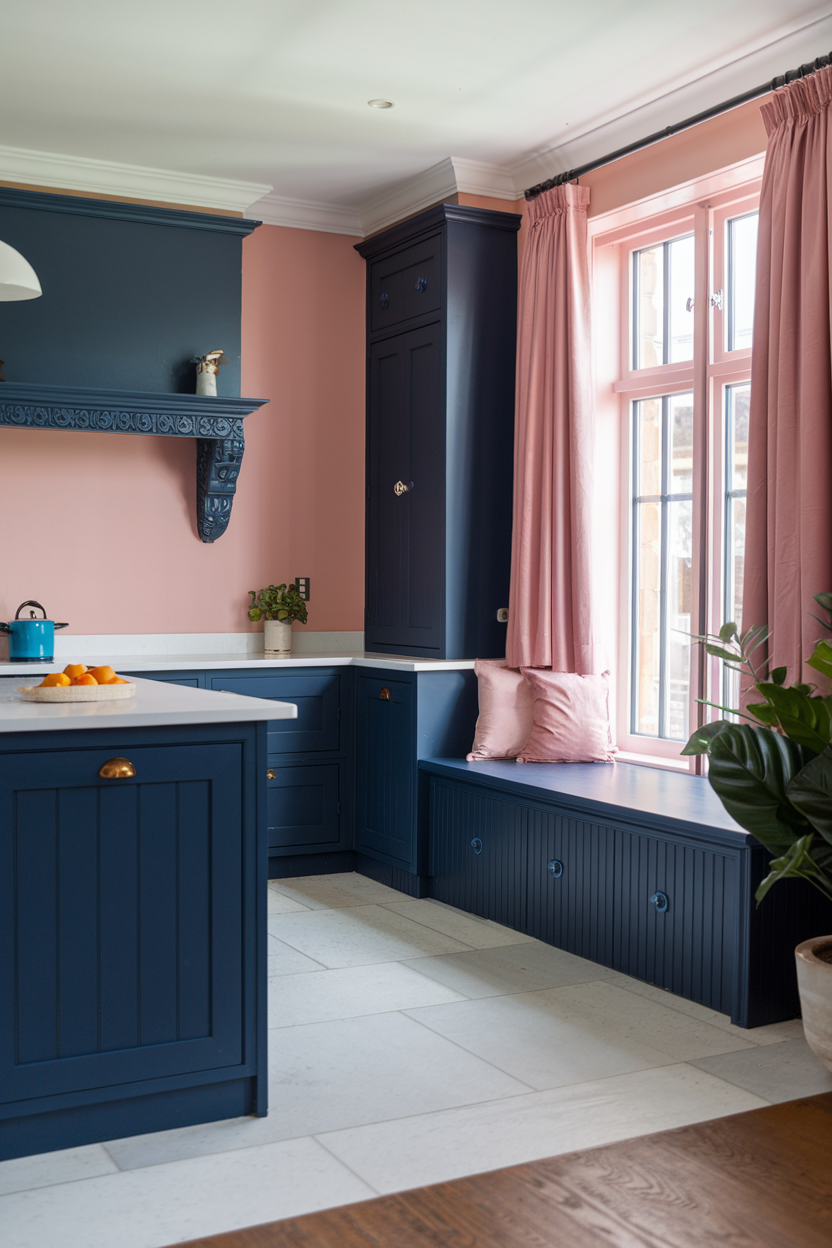 Make your kitchen island the centerpiece of your space by painting it pink. Whether it’s a soft pastel or a bold shade, a pink island adds character and flair. This can be balanced with neutral cabinets and countertops, allowing the island to take center stage. A pink island is a great way to introduce color without overwhelming the entire kitchen, making it the perfect blend of practicality and design.