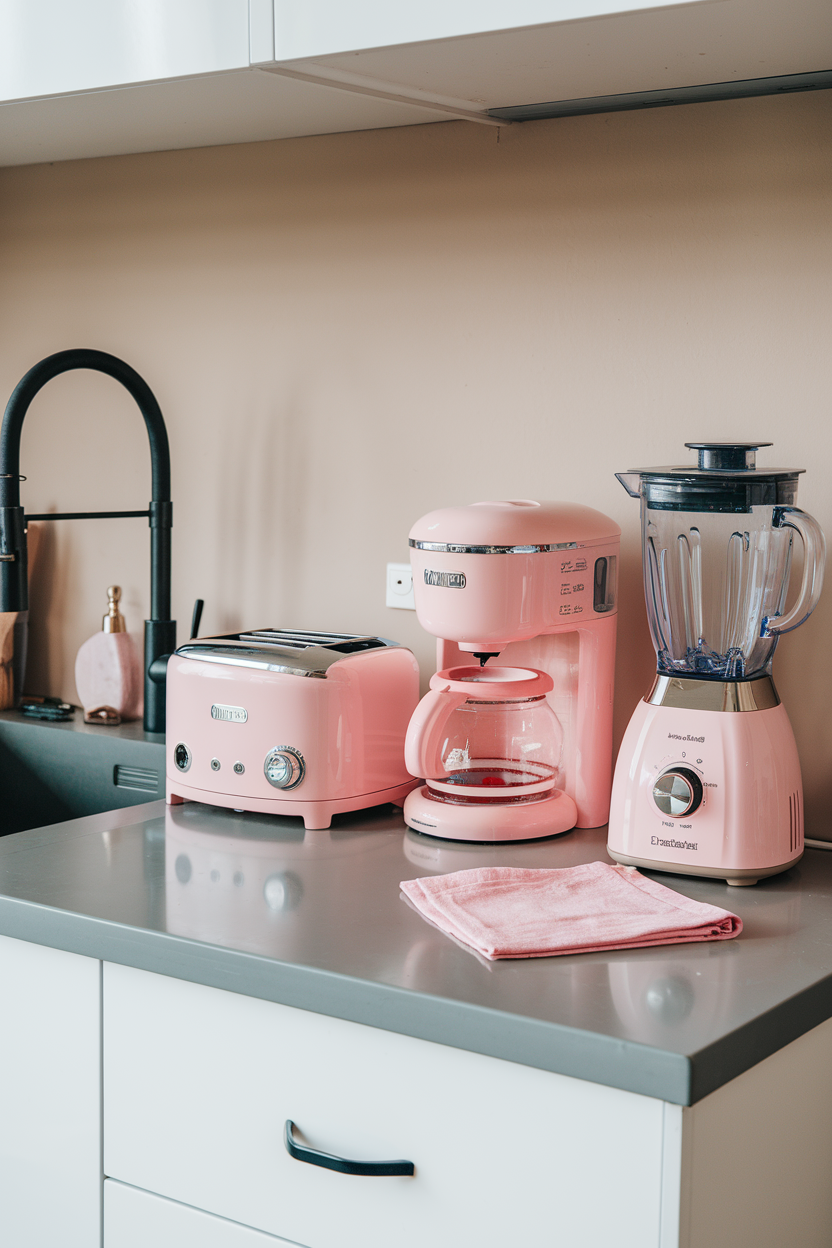 Create a cohesive look with a set of pink appliances, from toasters to coffee makers and blenders. These small appliances can add a fun, retro vibe to your kitchen while still being functional. Some brands offer stylish pink options that bring a playful, nostalgic feel to your countertop. Mix and match different shades of pink to create a unique, curated look.