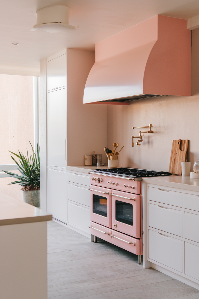 A pink range hood is an unexpected and stylish way to incorporate color into your kitchen. Whether it’s a soft pastel or a more vibrant pink, this design choice turns a functional piece into a focal point. Pair it with neutral cabinets and countertops to let the range hood shine, or go bold with other pink accents for a cohesive, colorful look.
