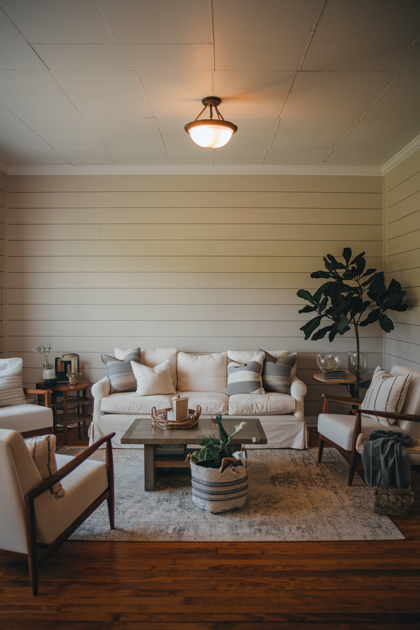 Shiplap paneling brings rustic charm and textural interest to interiors while maintaining a clean, timeless appeal. This horizontal wooden boarding originated as a practical exterior siding but has become beloved in interior spaces for its casual elegance. The subtle shadow lines created between each board add depth and movement to the walls without busy patterns. Painted white, shiplap creates a bright, airy backdrop perfect for coastal or farmhouse styles, while natural wood tones offer warmth to modern rustic spaces. Unlike more ornate wall treatments that may date quickly, shiplap’s simplicity ensures it remains relevant. Its versatility allows it to work equally well as an accent wall in living rooms, as bathroom wainscoting, or even on ceilings for added character throughout the home.
