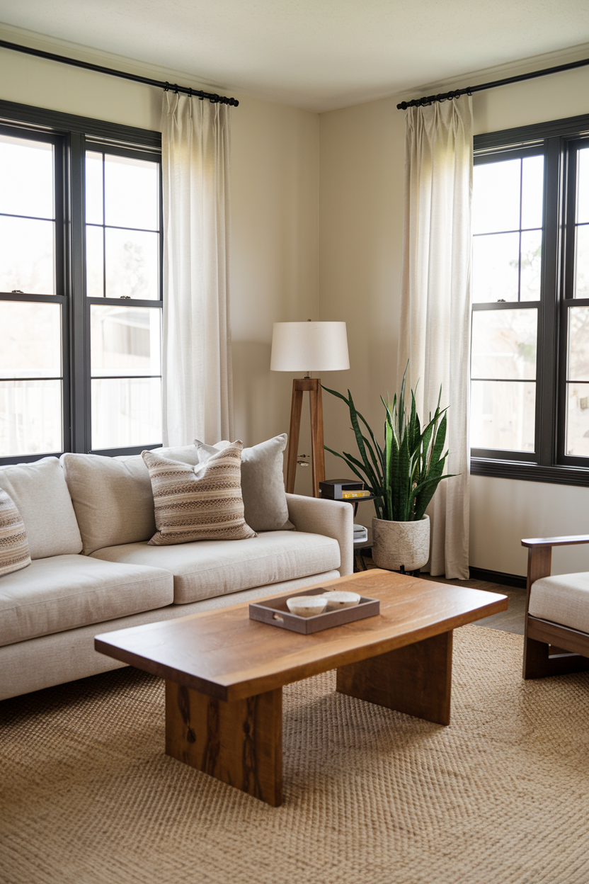 Black window frames make a dramatic yet timeless statement that enhances both traditional and contemporary architecture. This bold framing choice creates a striking contrast against light-colored walls, drawing attention to the views outside while adding sophisticated definition to interior spaces. Unlike white frames that can fade into the background, black frames serve as intentional design elements that highlight a home’s architectural features. The color’s versatility allows it to complement various materials – from warm wood tones to cool metals and stone. Black window frames gained popularity in industrial lofts but have since proven their staying power in everything from modern farmhouses to minimalist apartments. They create a polished, intentional look that feels current without being trendy, and when paired with natural light, the dark frames help windows appear larger and more prominent. This enduring design choice continues to gain favor for its ability to add instant character and depth to any space.