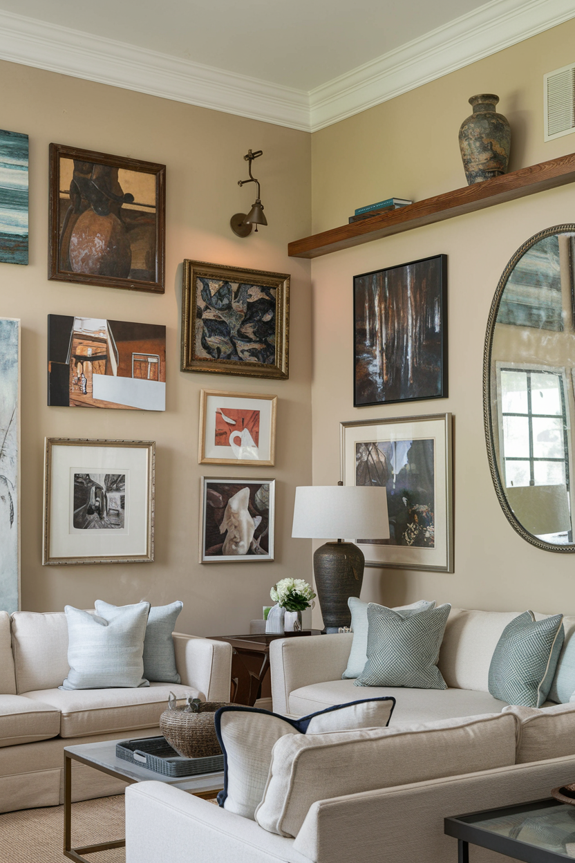 Gallery walls represent a timeless solution for displaying art and photographs in a way that feels both personal and curated. This decorating approach allows for continuous evolution – new pieces can be added over time to reflect changing tastes and life experiences. The beauty of gallery walls lies in their flexibility; they can be meticulously arranged in symmetrical grids for a formal look or assembled organically for eclectic charm. Mixing frame styles, artwork sizes, and even three-dimensional objects creates visual interest while telling a unique story. Unlike single large artworks that dominate a space, gallery walls invite closer inspection and discovery. They work in virtually any room – from dramatic stairwell displays to intimate bedroom arrangements – and can be adapted to any design style from minimalist to maximalist. This enduring decorating technique celebrates personal expression while adding depth and personality to blank walls in a way that never feels outdated.