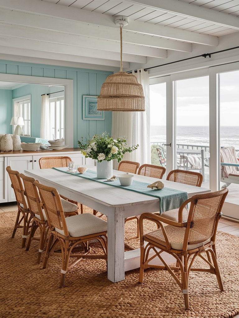 Use striped textiles, woven baskets, and nautical-inspired décor. Keep the palette fresh with plenty of whites and soft blues. Large windows and sheer drapes invite sunlight and sea breezes.