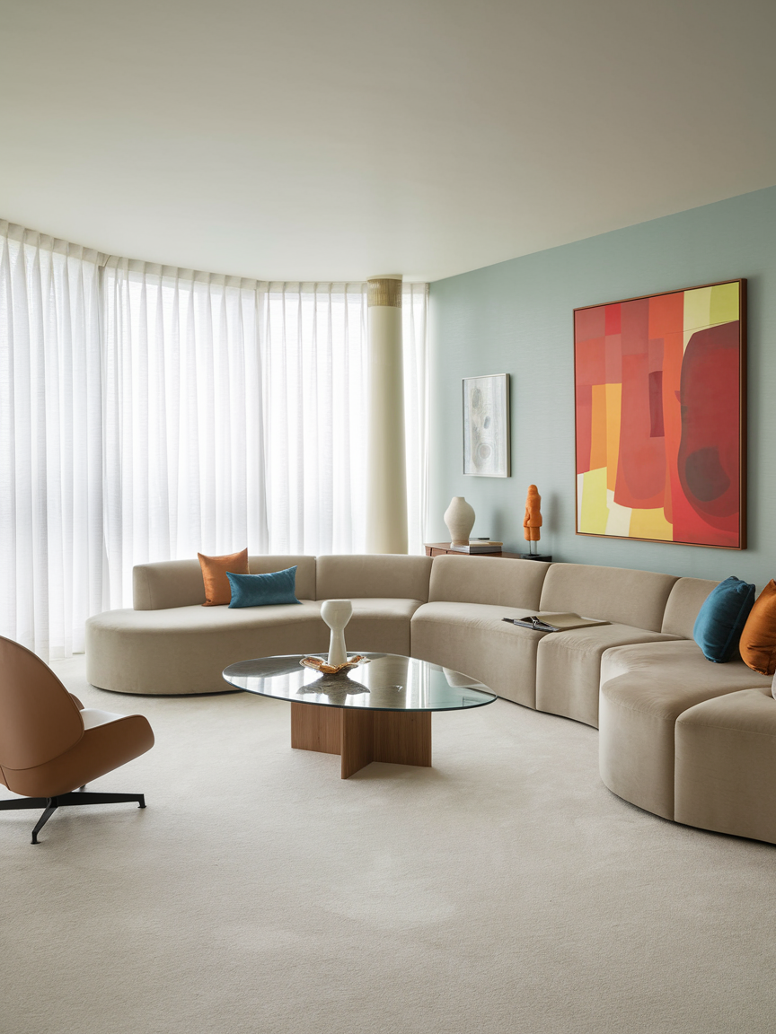 Choose statement furniture like an Eames lounge chair or a teak sideboard. Balance warm woods with playful colors, and add retro-inspired lighting fixtures for authenticity.