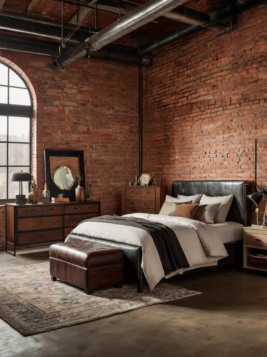Combine leather furniture with reclaimed wood and metal. Embrace exposed pipes, brick walls, or concrete floors. Accessories like Edison bulbs and factory-style shelving capture the industrial vibe.