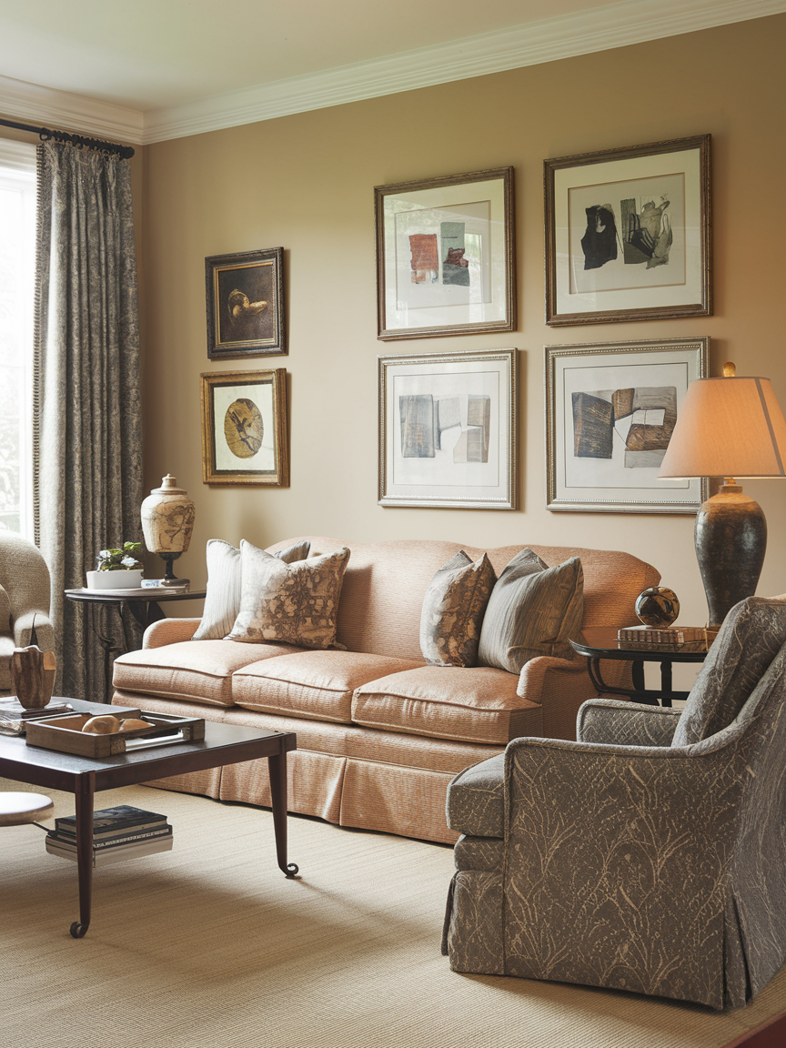Add crown molding, heavy drapery, and classic art. Use matching pairs of lamps or chairs to create balance. Traditional spaces often feel layered, luxurious, and curated.