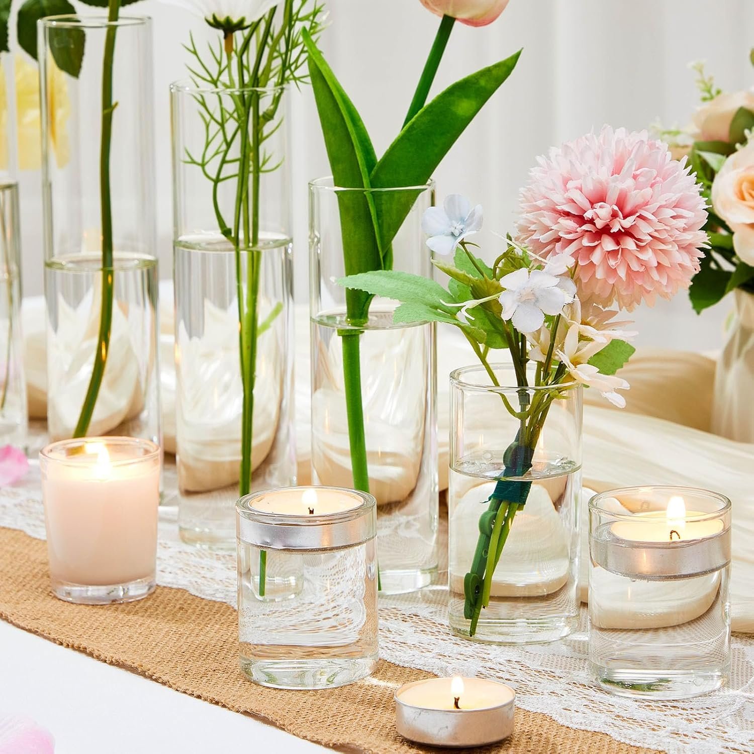 If you love decorating with flowers or styling tabletops for special occasions, this set of 12 clear borosilicate glass cylinder vases from Teenyyou offers incredible versatility and value. Each package includes twelve beautifully crafted vases in various heights, giving you endless creative possibilities. Whether you’re designing elegant centerpieces, arranging small bouquets, or simply adding a touch of freshness to your home, these vases make flower styling easy, fun, and visually stunning.
