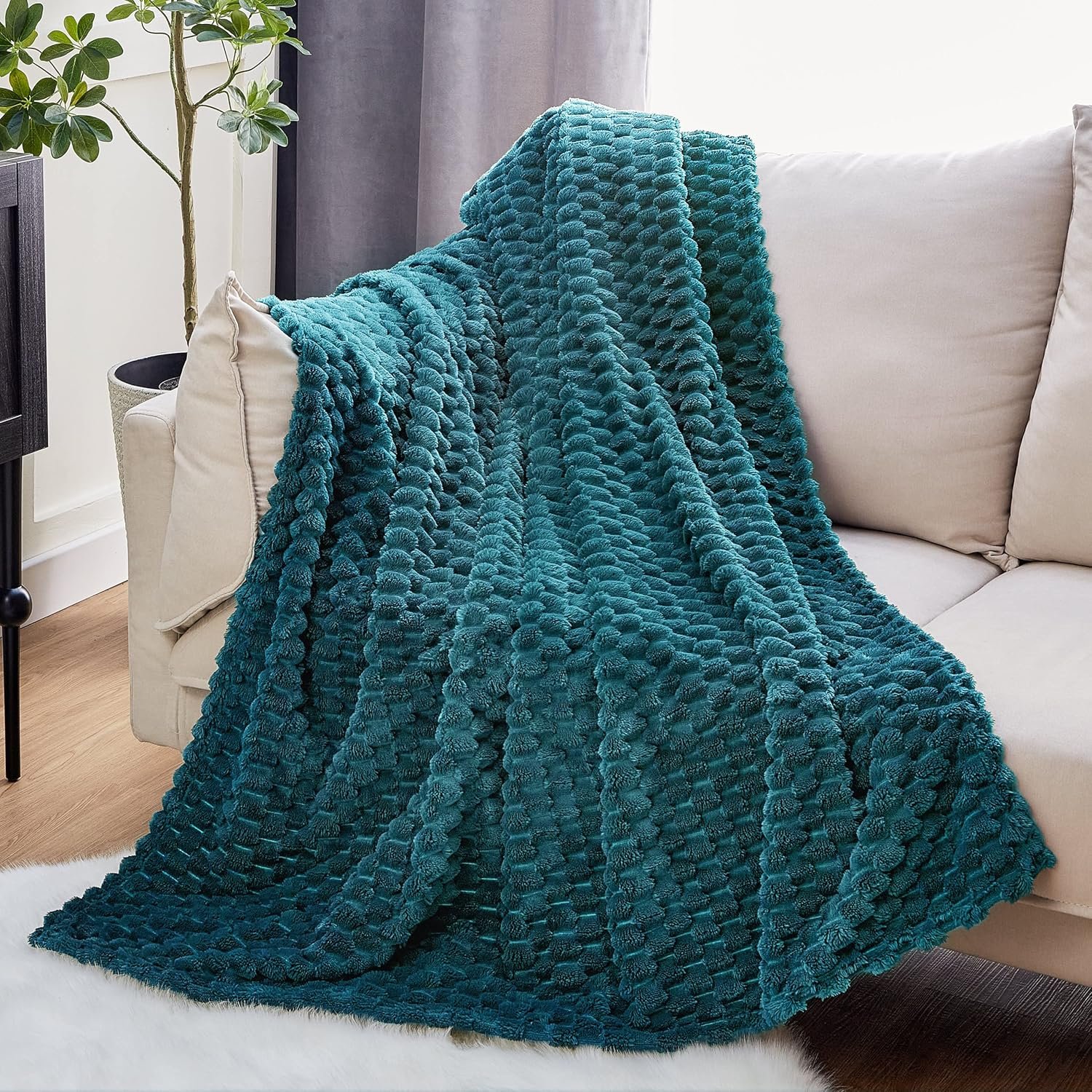 What truly sets this blanket apart is its eye-catching design. The elegant teal color paired with a 3D imitation turtle shell jacquard pattern adds depth, texture, and a modern decorative flair. Draped over a sofa, chair, or bed, it instantly elevates the look of your living room or bedroom, blending function with fashionable home décor.