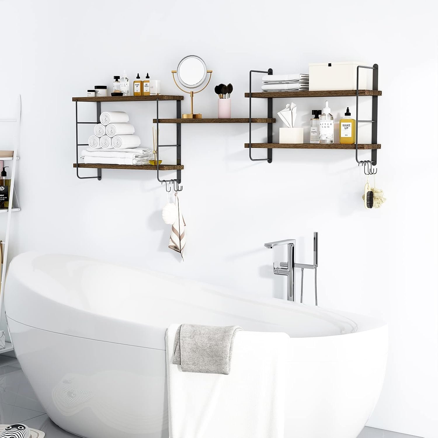 - [Easy to Install]: Our floating wall shelves include mounting screws for both solid and hollow walls, along with installation instructions. They can be flexibly combined to meet various storage needs, making them an ideal choice for decorating living rooms, bedrooms, kitchens, bathrooms, laundry rooms, and even garages