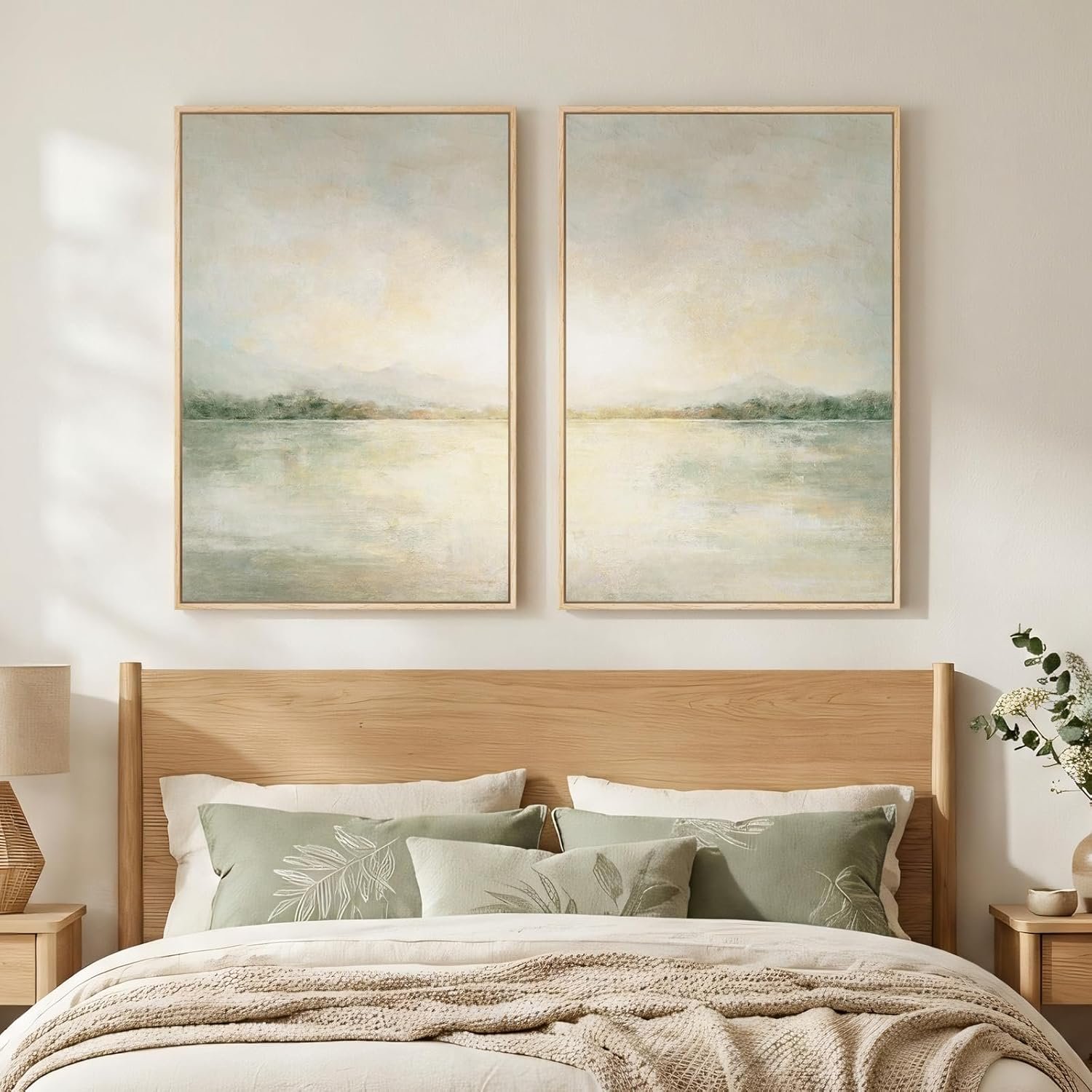 Designed for convenience, this framed canvas set arrives ready to hang with included hardware, allowing you to display it right out of the box. Beyond personal use, it also makes a thoughtful and versatile gift. Ideal for housewarmings, weddings, holidays, birthdays, or new-home celebrations, this serene lake-inspired artwork is a timeless choice that complements nearly any interior.