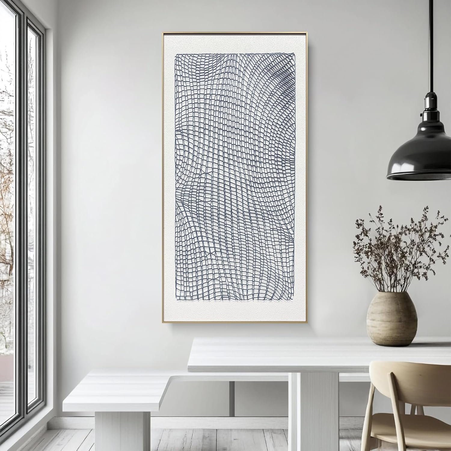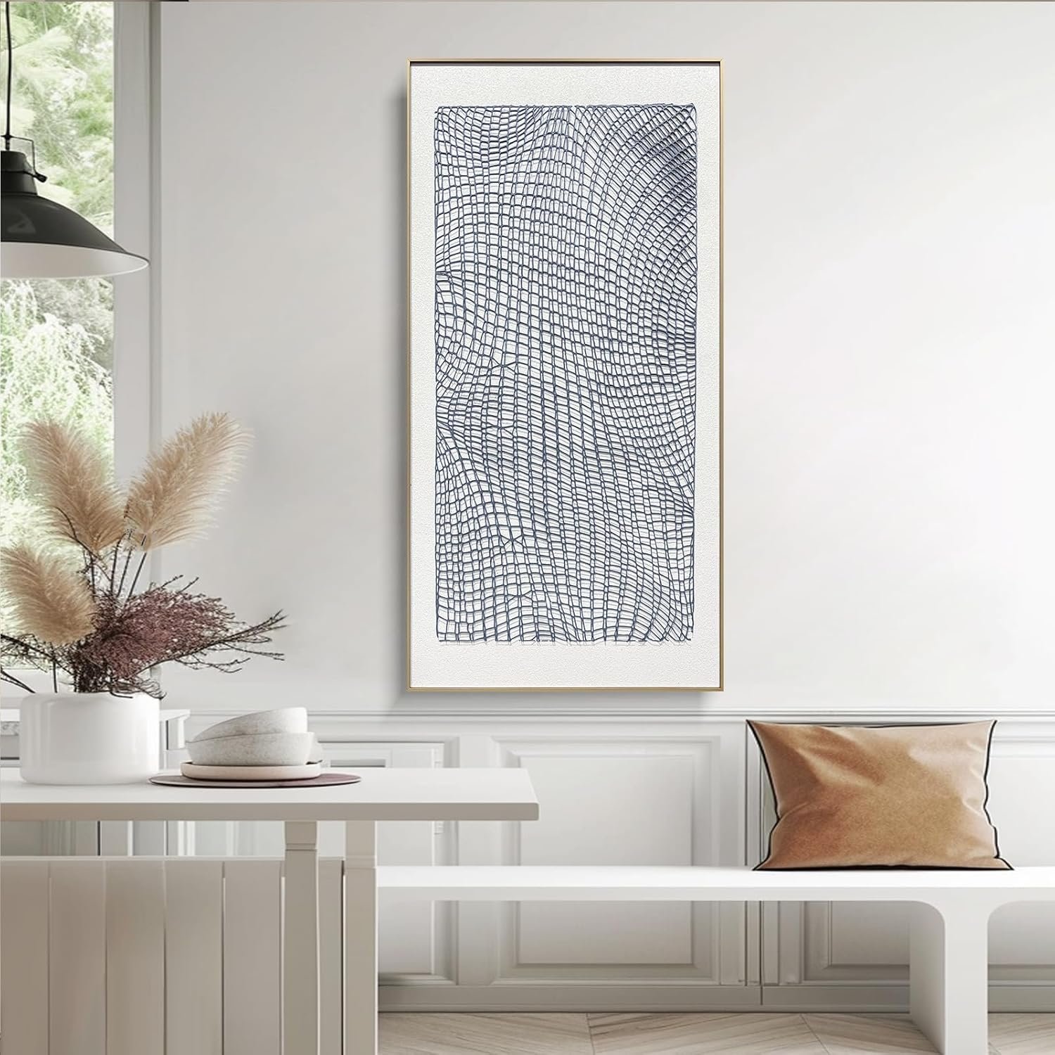 Rooted in the charm of abstract art, the design features flowing, net-like wave patterns that feel both organic and contemporary. Shades of blue and green blend seamlessly across the surface, creating a sense of movement and energy. This dynamic composition brings a modern artistic atmosphere into the space, offering visual interest without overwhelming the room.