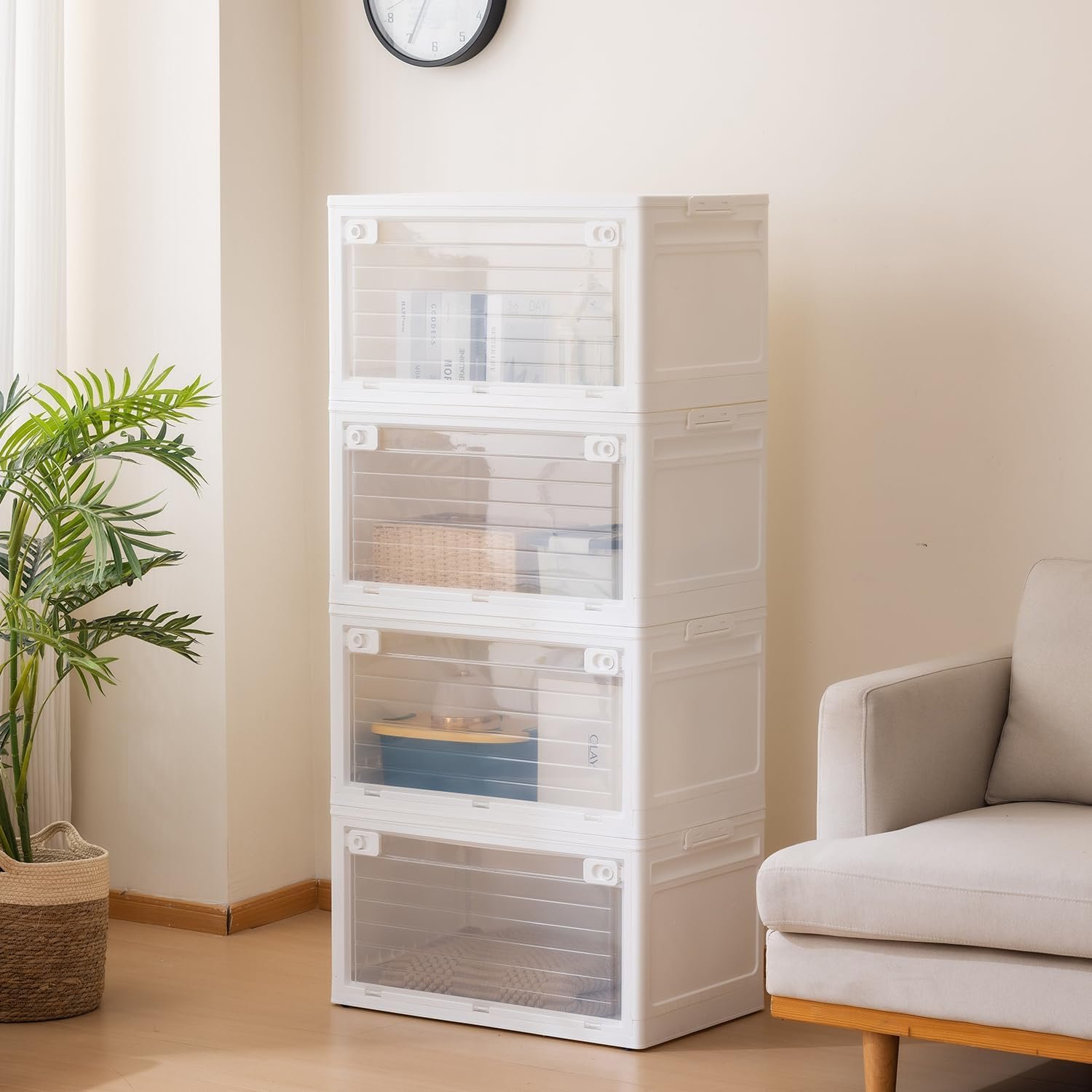 - Stackable storage Box: Hidden wheels on base lock securely into upper bins (4-bins stacked height: 55.92”/142cm). Achieve 200% more vertical storage vs single bins – perfect for closets/garages with limited floor space. No tools required for assembly!