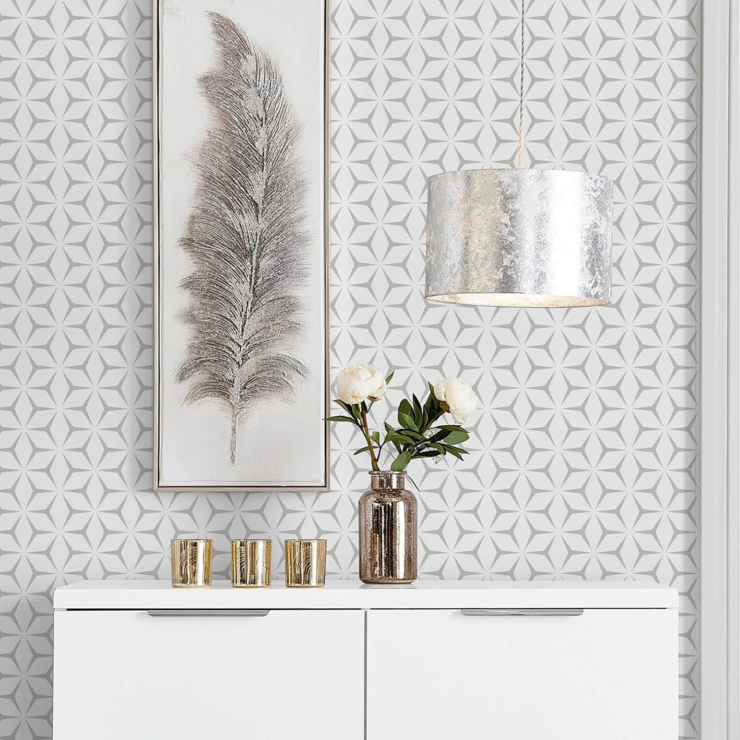 Light Grey Peel-and-Stick Wallpaper : Modern Boho Geometric Design for Renter-Friendly Makeovers