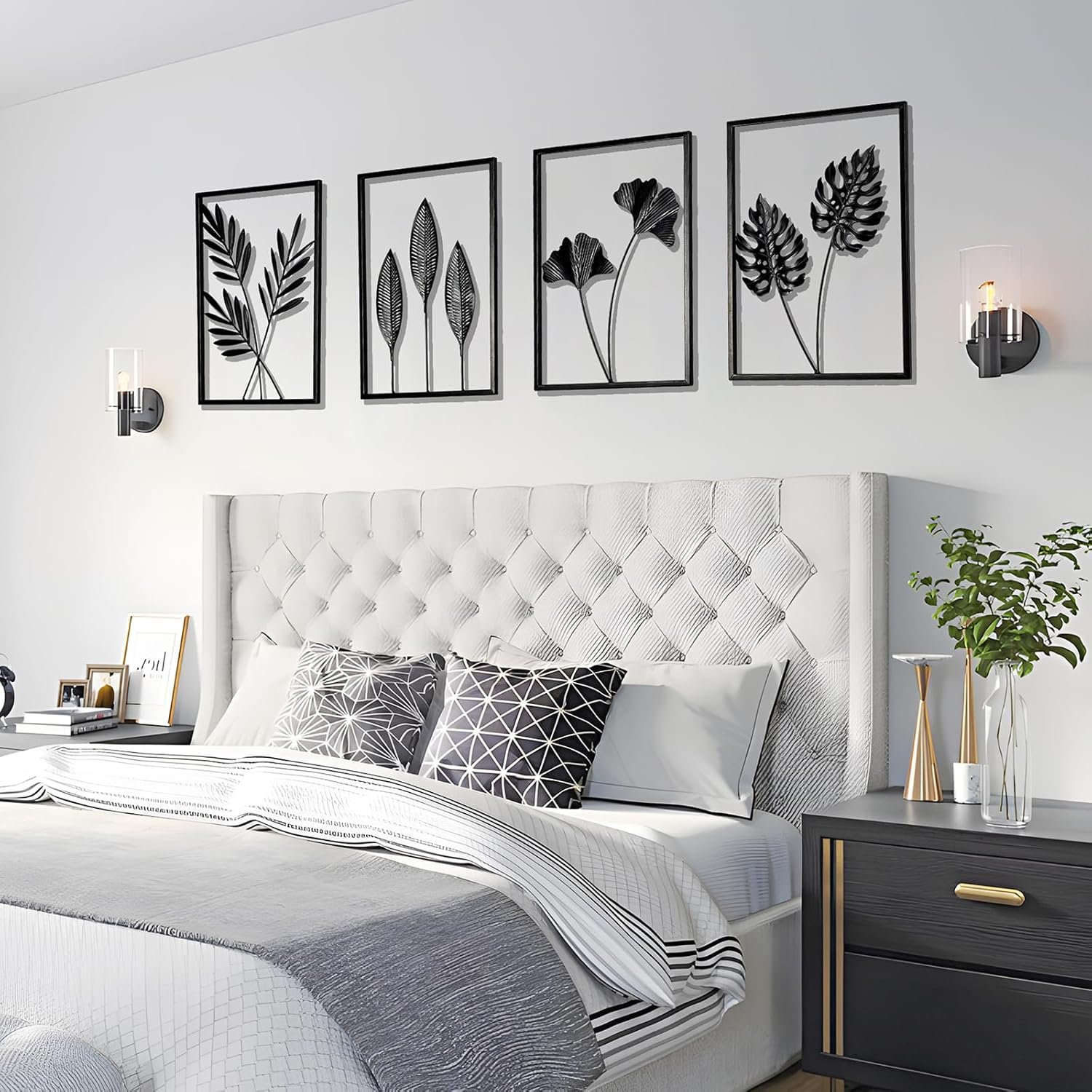 With its large, eye-catching size, this four-piece wall art is ideal for filling blank walls and creating a striking visual statement. When displayed together, the ginkgo leaf design stretches across a wide area, bringing a sense of calm elegance to living rooms, bedrooms, hallways, offices, or dining spaces. The sleek black finish paired with subtle lighting blends modern style with a tranquil, nature-inspired feel.