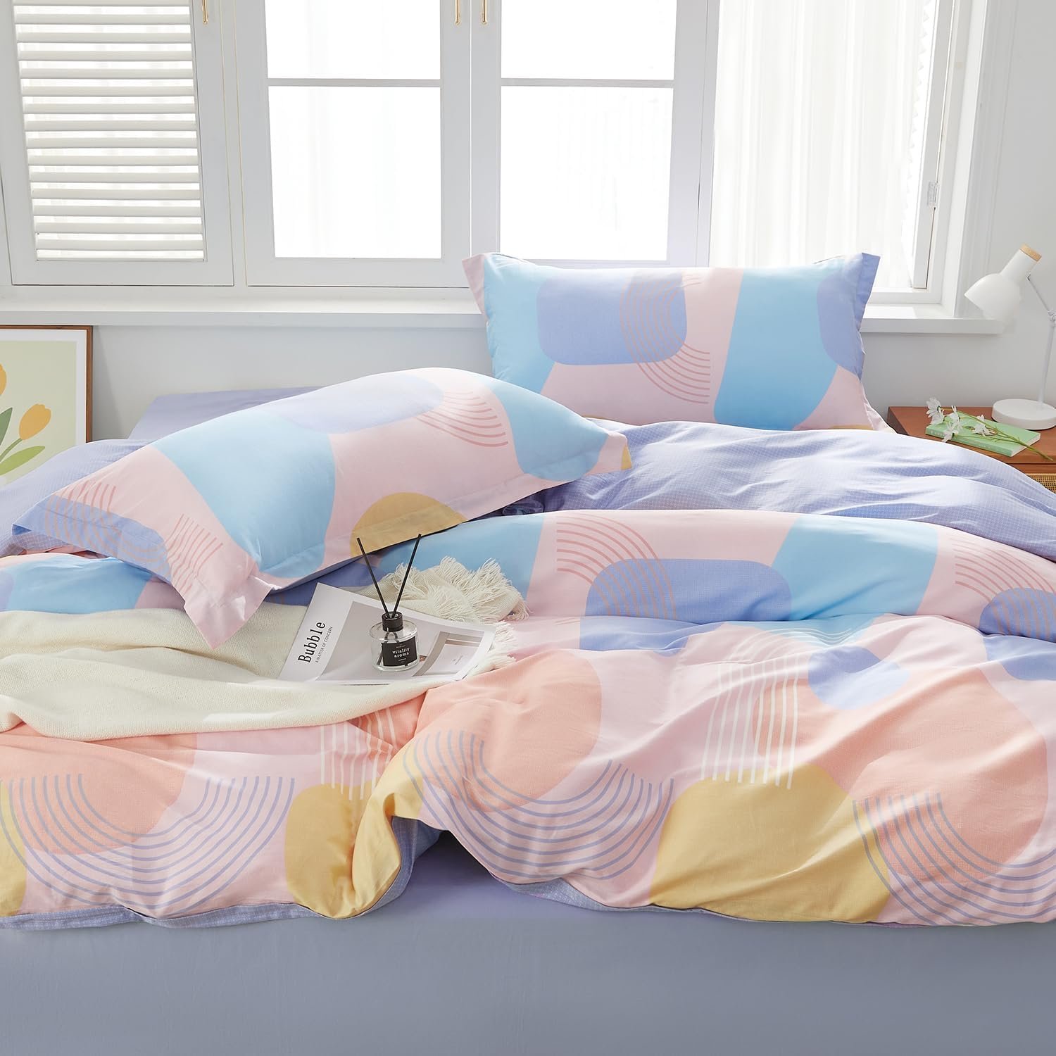 If you’re looking to refresh your bedroom with a cozy burst of color, this SAPHREAS Queen Duvet Cover Set delivers a perfect blend of comfort and style. Its modern geometric design features a soft, abstract mix of pink, blue, and yellow tones that instantly brightens any space. The pastel palette creates a gentle, cheerful ambiance—ideal for anyone who wants their bedroom to feel warm, inviting, and effortlessly stylish.
