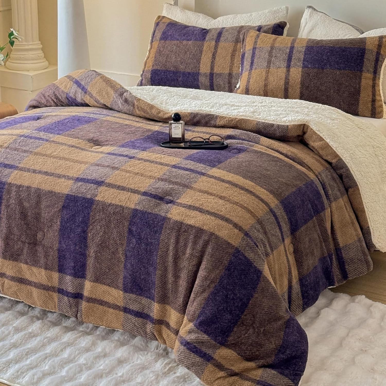 What sets this comforter apart is its creative dual-sided design. One side features a silky plush texture decorated with a classic geometric pattern, giving your room a modern, elevated aesthetic. Flip it over, and you’ll find a warm, cozy Sherpa layer that’s perfect for chilly nights. This reversible design not only enhances the visual appeal of your room but also provides practical flexibility—simply switch sides depending on your comfort needs or style preference.