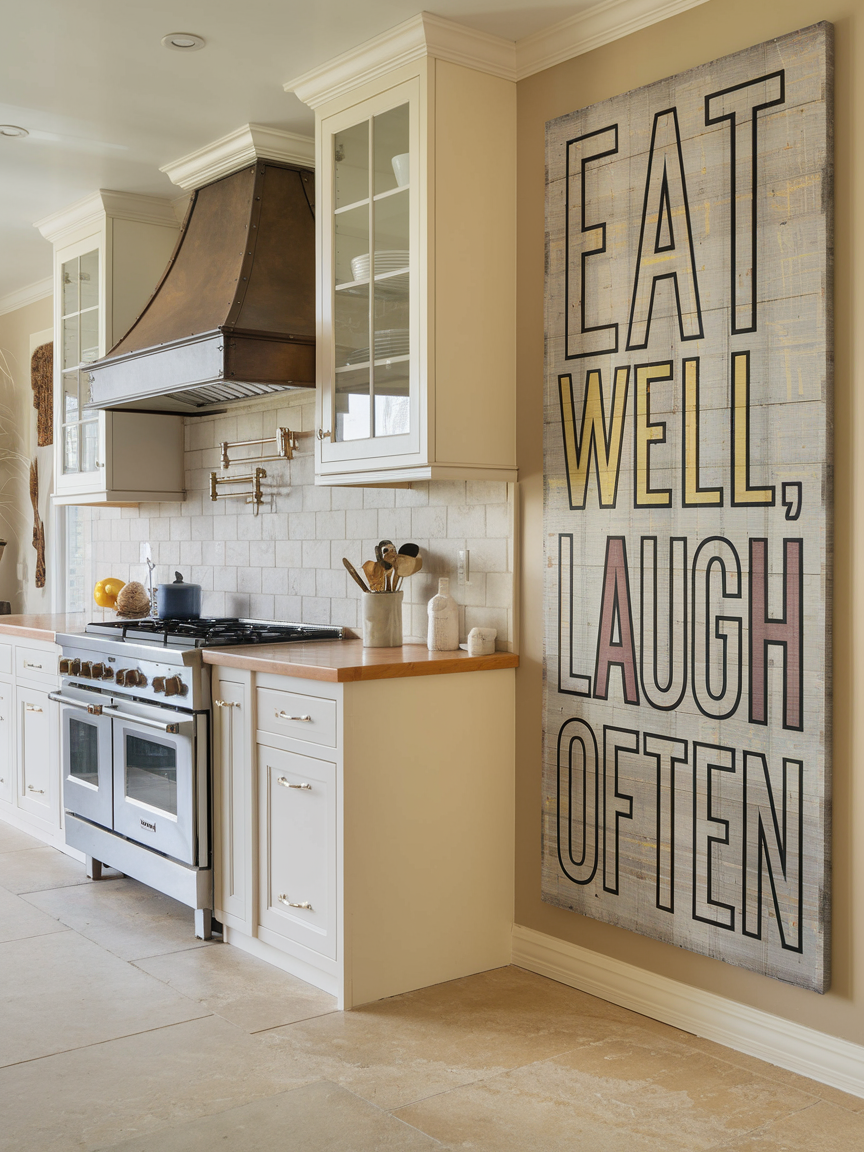 Kitchens are perfect for witty or food-related quotes. Think phrases like “Eat Well, Laugh Often” or “Good Food, Good Mood”. These small touches make daily routines more enjoyable while adding charm to the space.