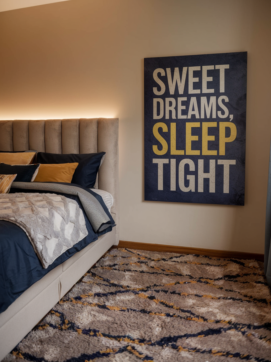 Word art in the bedroom can inspire relaxation and positivity. Mantras like “Sweet Dreams, Sleep Tight” or “Create the Life You Love” encourage reflection and mindfulness, making your personal sanctuary even more welcoming.