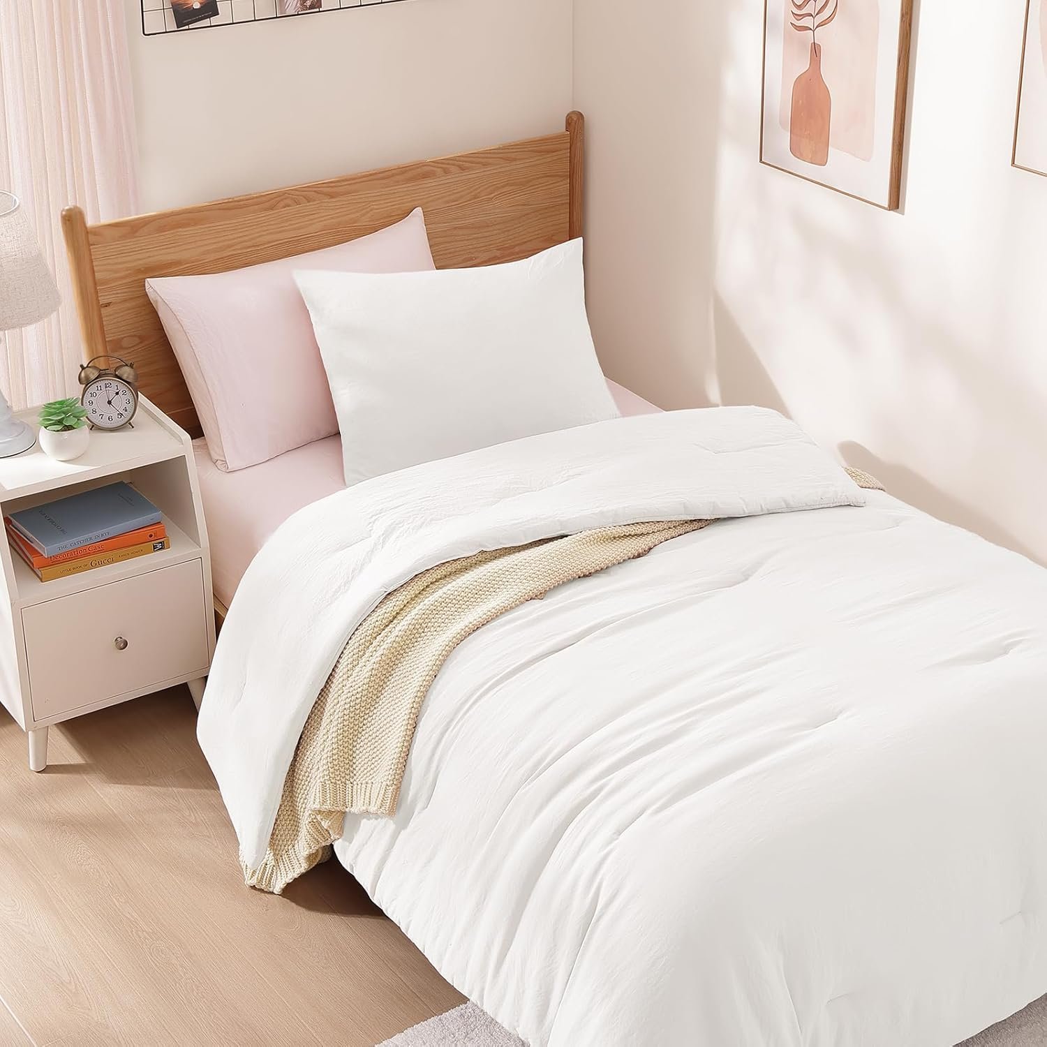 Transform your bedroom into a clean, calming retreat with this Arctic White Twin/Twin XL comforter set from WRENSONGE. Designed with a minimalist aesthetic, this bedding offers a perfectly balanced blend of simplicity and style. The crisp white hue complements any décor—from modern and Scandinavian to classic and traditional—making it an effortless way to refresh a bedroom, dorm, or guest room. Its timeless look brings a sense of serenity, creating a space where you can unwind with ease.
