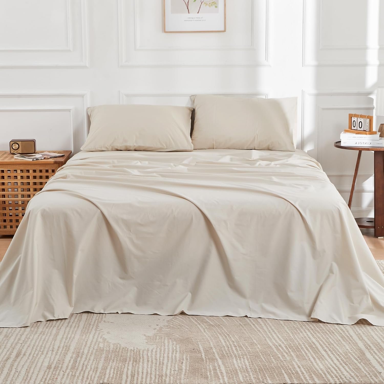 The construction of this set is designed with both comfort and practicality in mind. Featuring a 300-thread count percale weave, the fabric maintains the right balance of durability and breathability, giving the sheets a cool, structured feel that stays airy against your skin. The fitted sheet includes a generous 16-inch deep pocket, allowing it to fit most modern mattresses with ease. Since not everyone prefers a top sheet, this set includes only the essentials—one fitted sheet and two pillowcases—so you’re not paying for items you don’t use.