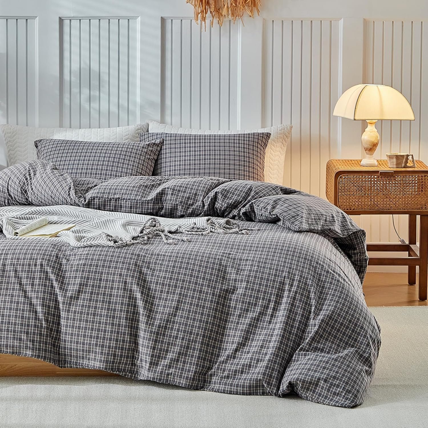 Transform your bedroom into a cozy retreat with the DuShow Navy Gingham Duvet Cover Set, crafted from 100% premium washed cotton for exceptional softness and breathability. This high-quality cotton fabric offers a naturally moisture-wicking and skin-friendly feel, making it perfect for all seasons. Whether it’s warm summer nights or cool winter mornings, the lightweight yet durable material keeps you comfortable year-round.